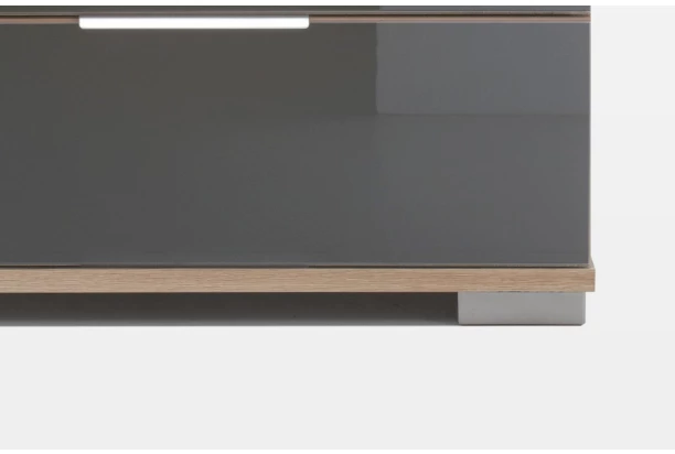 Nočný stolík z programu Easy plus ponúka 2 priestranné zásuvky nad sebou. V kombinácii dekoru dub sonoma a šedého skla.
