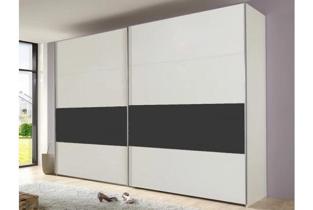 Šatníková skriňa o celkovej šírke 270 cm sa svojim univerzálnym štýlom hodí do akejkoľvek spálne, chodby alebo šatne. Vyrobená v kombinácii biela/antracitová šedá a vďaka 2 posuvným dverám sú vnútorné úložné priestory ľahko prístupné. Vnútri skrine nájdete police a šatníkové tyče – vnútorné priestory môžete navyše ľubovoľne doplniť ďalšími policami alebo príslušenstvom.
