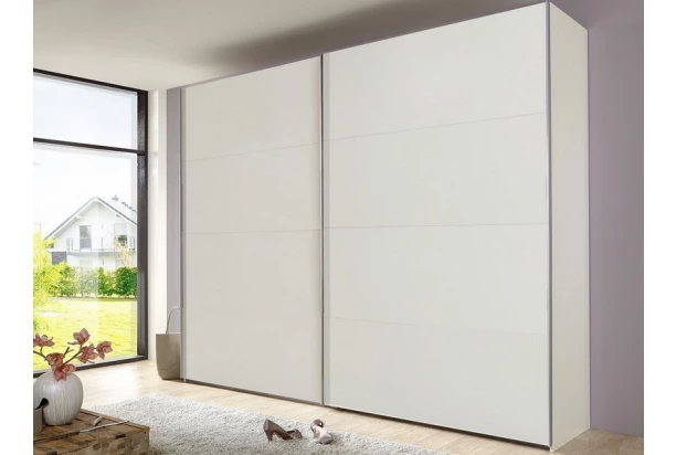 Šatníková skriňa o celkovej šírke 225 cm sa svojim univerzálnym štýlom hodí do akejkoľvek spálne, chodby alebo šatne. Vyrobená v celo-bielom prevedení a vďaka 2 posuvným dverám sú vnútorné úložné priestory ľahko prístupné. Vnútri skrine nájdete police a šatníkové tyče – vnútorné priestory môžete navyše ľubovoľne doplniť ďalšími policami alebo príslušenstvom.
