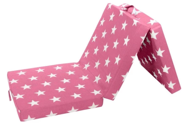 Skladací matrac pre príležitostné spanie návštev, by nemal chýbať v žiadnej domácnosti. Látkový ružový poťah so vzorom hviezd. Možno využiť aj ako doplnok do detskej izby na hranie.