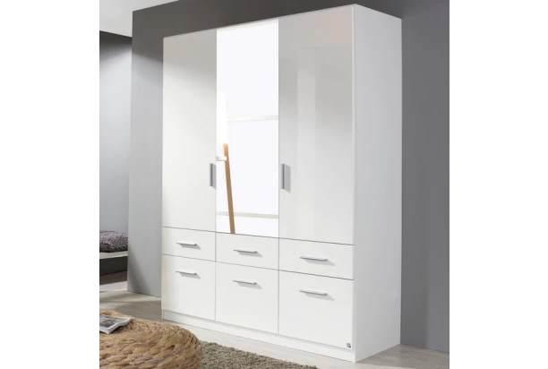Skriňa v bielom vysokolesklom prevedení pôsobí veľmi luxusne. Minimalistický dizajn v praktickej kombinácii 3 dverí a 6 zásuviek.