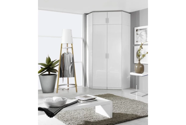 Skriňa v bielom vysokolesklom prevedení pôsobí veľmi luxusne. Minimalistický dizajn v 2-dverovom prevedení a s množstvom vnútorných políc.