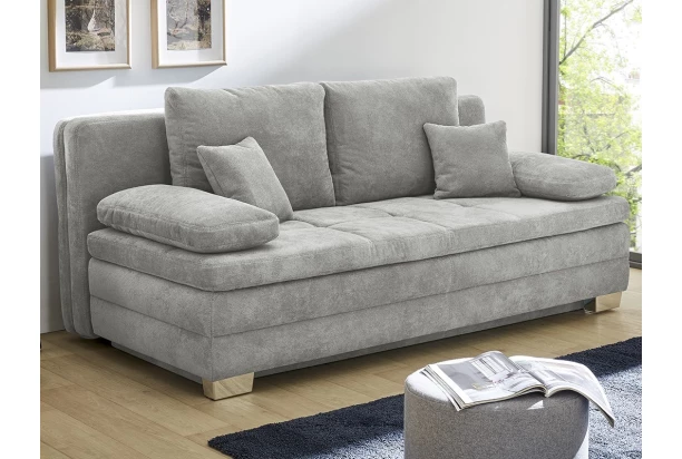 Rozkladacia pohovka s kvalitnou polyuretánovou penou v sedáku a operadle ponúka veľmi príjemný komfort počas sedenia aj ležania. Túto pohovku je možné využiť aj na trvalé spanie. Očalúnená látkou vo farbe svetlo šedá. Integrovaný úložný priestor pod sedákom prakticky poslúži na odkladanie lôžkovín alebo napríklad sezónnych vecí.