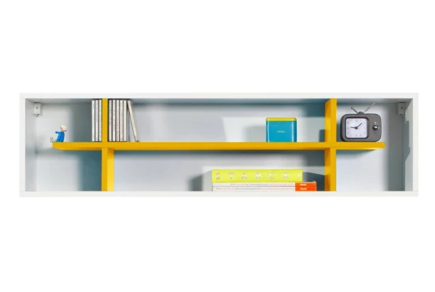 Program nábytku Mobi má nápadito riešenú konštrukciu v bielo-žltej kombinácii farieb. Hodí sa pre zariaďovanie akejkoľvek izby. Závesný regál.