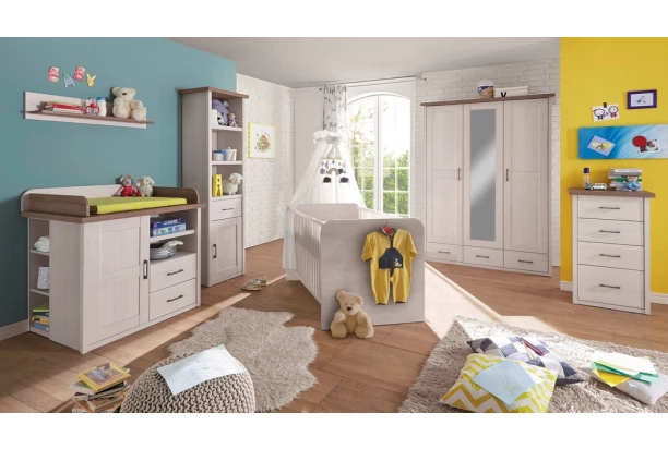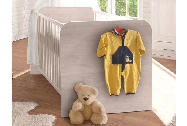 Detská postieľka o rozmere lôžka 70×140 cm z kolekcie Luca v elegantnom štýle. Vyrobená v dekore bielenej pínie, ktorý imituje drevo s bieleným náterom. Vrátane výškovo nastaviteľného roštu.