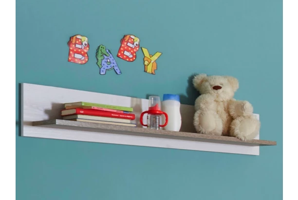 Nástenná polica z kolekcie Luca. V kombinácii bielenej pínie s útulnými dubovými tónmi.