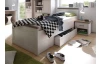 Romantické kúzlo nábytku v elegantnom vidieckom štýle podtrhujú dekoratívne reliéfy predných plôch a kombinácie bielenej pínie s útulnými tónmi dubového drevodekoru. Oceníte aj vyššiu konštrukciu postele pre ľahšie vstávanie a bočnú zásuvku pre uschovanie lôžkovín.