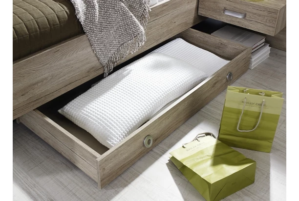 Praktickú úložnú zásuvku na kolieskach ľahko zasuniete pod posteľ. Vyrobená v dekore dub San Remo.