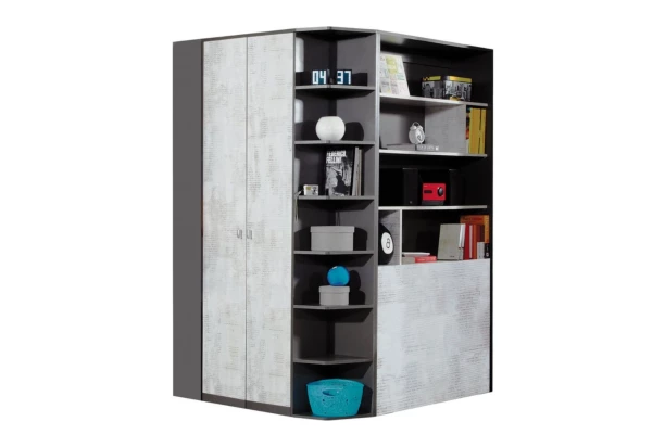Rohová šatníková skriňa Tablo, šedá/enigma