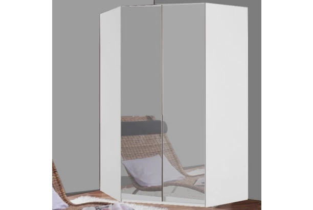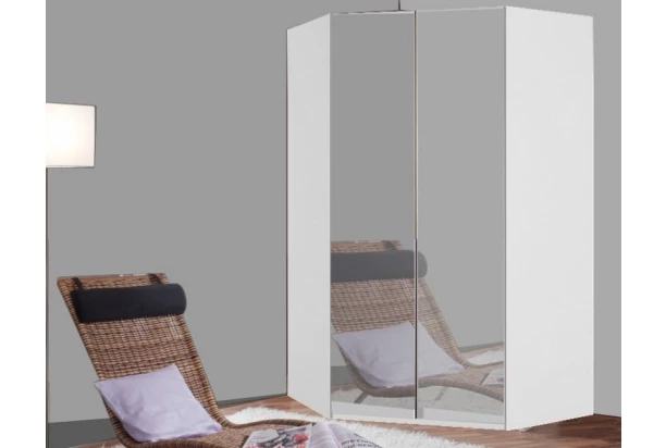 Rohová šatníková skriňa z kolekcie New York D v bielej farbe sa vyznačuje moderným minimalistickým dizajnom a navyše extra vysokou konštrukciou – do skrine tak môžete uložiť ďaleko viac vecí. Obsahuje 2 dvere so zrkadlom a objemný členitý vnútorný priestor s policami a vnútorným osvetlením.