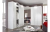 Rohová šatníková skriňa New York D, biela / zrkadlo / osvetlenie