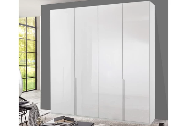 Šatníková skriňa z kolekcie New York D v kombinácii biela / biely lesk sa vyznačuje moderným minimalistickým dizajnom a navyše extra vysokou konštrukciou – do skrine tak môžete uložiť ďaleko viac vecí. Obsahuje 4 dvere, vnútorné police a šatníkovú tyč. Možnosť doplnenia o ďalšie police.