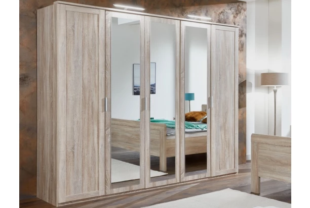 Šatníková skriňa so šírkou 225 cm z programu Nadja je vhodná pre vybavenie akejkoľvek spálne alebo izby – univerzálne elegantný nábytok osloví mladú aj staršiu generáciu. Vyrobená v dekore dub sonoma.