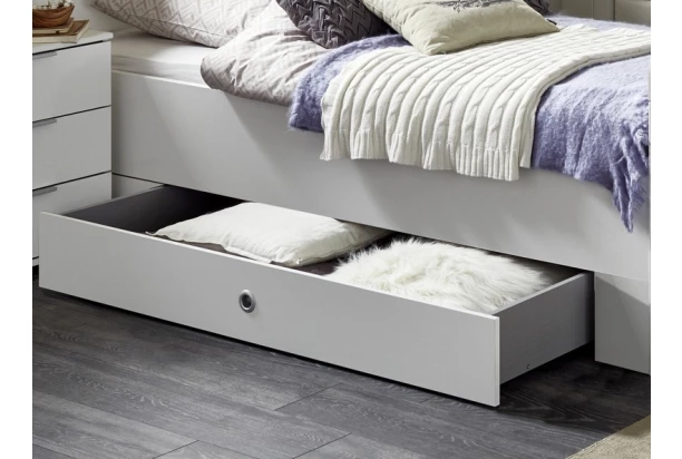 Úložná zásuvka pod posteľ z programu Nadja je určená pre doplnenie jednolôžka alebo dvojlôžka Nadja – prakticky tak doplní úložné priestory spálne alebo izby. Vyrobená v bielom dekore.