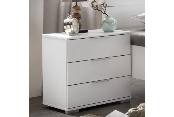 Vysoký nočný stolík s 3 zásuvkami z programu Nadja je vhodný pre vybavenie akejkoľvek spálne alebo izby – univerzálne elegantný nábytok osloví mladú aj staršiu generáciu. Vyrobený v bielom dekore.