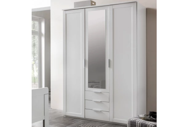 Šatníková skriňa o šírke 135 cm z programu Nadja je vhodná pre vybavenie akejkoľvek spálne alebo izby – univerzálne elegantný nábytok osloví mladú aj staršiu generáciu. Vyrobená v bielom dekore a doplnená zrkadlom.