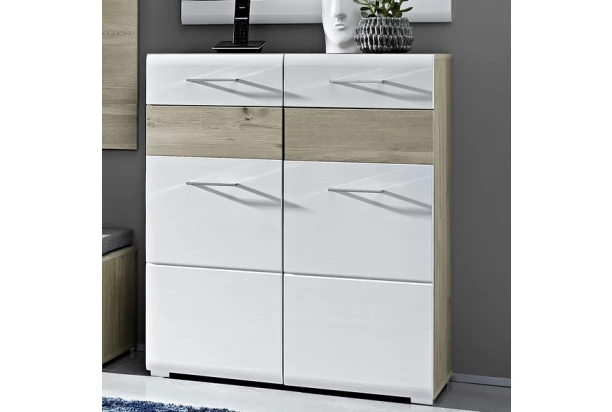 Komoda/botník Funny, dub strieborný/biela