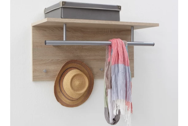 Praktický nástenný panel obsahuje závesné háky, šatníkovú tyč a hornú odkladaciu policu. Môžete ho využiť v predsieni alebo kdekoľvek inde.