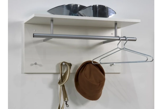 Praktický nástenný panel obsahuje závesné háky, šatníkovú tyč a hornú odkladaciu policu. Môžete ho využiť v predsieni alebo kdekoľvek inde.