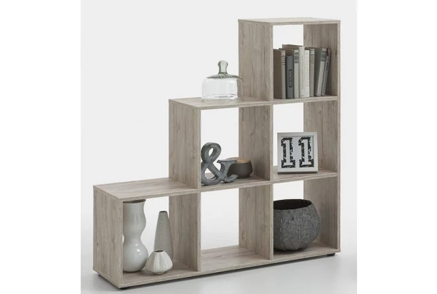 Regál so 6 priehradkami môže byť umiestnený k stene alebo voľne v priestore. Vyrobený v dekore pieskový dub.
