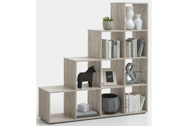 Regál s 10 priehradkami môže byť umiestnený k stene alebo voľne v priestore. Vyrobený v dekore pieskový dub.
