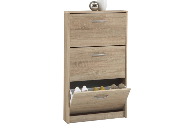 Botník v dekore dub sonoma obsahuje celkom 3 výklopné dvere s priehradkou pre prehľadné ukladanie obuvy. Vďaka svojim rozmerom nájde svoje miesto v každej menšej predsieni.
