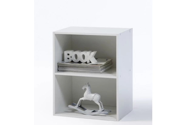 Nízky regál v bielej farbe obsahuje 2 priehradky a je úplne univerzálnym doplnkom do akejkoľvek miestnosti – do obývacej alebo detskej izby, spálne, pracovne alebo napríklad komory.