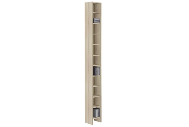 Vysoký regál v dekore dub sonoma má univerzálne využitie. Desať vnútorných políc pre ukladanie knižiek, cédečiek alebo drobností.