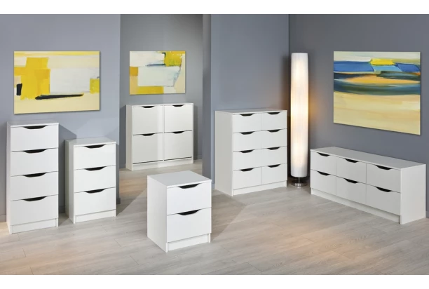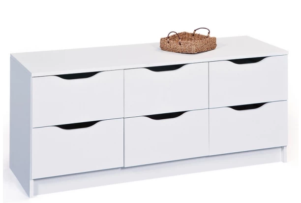 Zásuvková (TV) komoda z nadčasovej bielej série Westphalen je charakteristická profilovaným úchytom v zaoblenom tvare. Obsahuje celkom 6 praktických zásuviek a má celkovú šírku 122 cm.