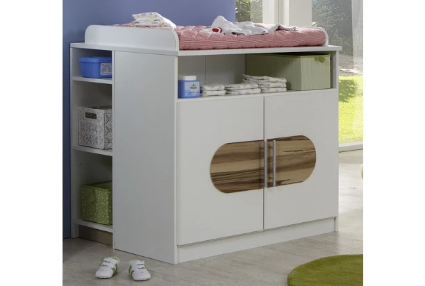 - horná plocha komody slúži ako prebaľovací pult s bezpečnostnými zaguľatenými bočnicami po stranách