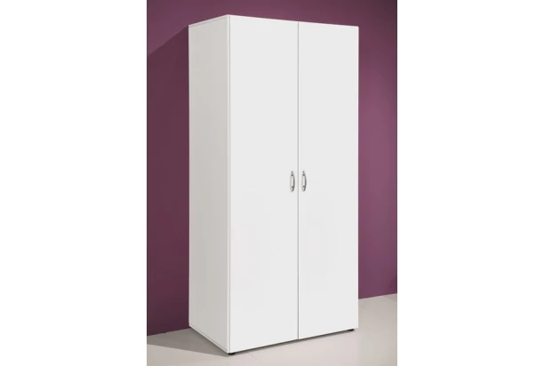 Jednoduchá 2-dverová skriňa ku všestrannému využitiu. Šírka 81 cm a výška 177 cm umožňuje umiestnenie aj do malého priestoru. V bielom prevedení.