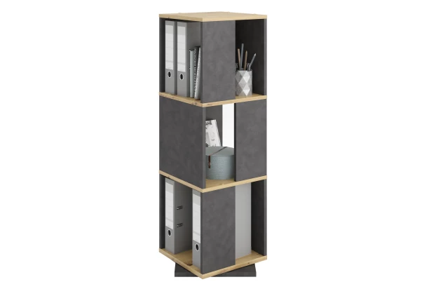 Otočný regál Tower, dub artisan/vintage optika kovu