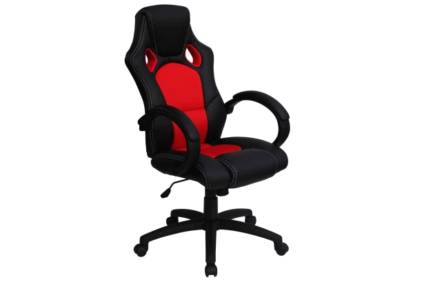 Atraktívne dizajnové kreslo do pracovne pripomína pohodlnú sedačku pretekárskeho vozidla. V čierno-červenom prevedení.