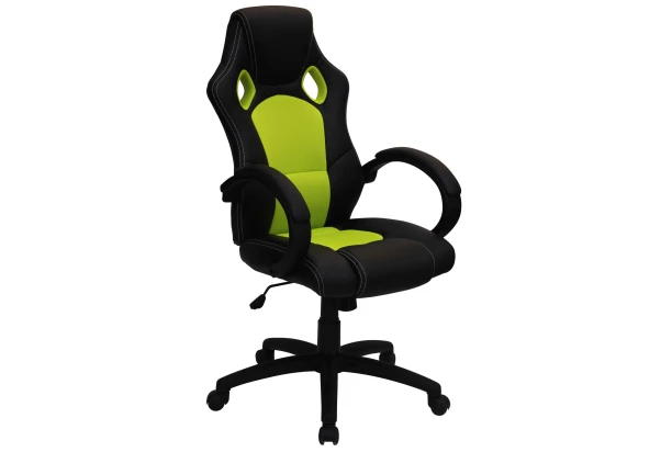 Atraktívne dizajnové kreslo do pracovne pripomína pohodlnú sedačku pretekárskeho vozidla. V čierno-zelenom prevedení.
