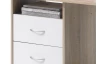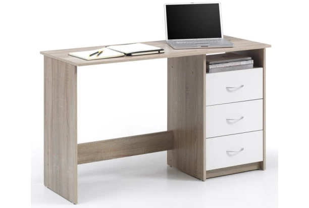 Písací stôl s úložnými zásuvkami, ktoré môžete univerzálne zostaviť na pravú alebo ľavú stranu. Rozmerovo pasuje takmer do každej miestnosti. Vyrobený v dekore dub sonoma/biela.
