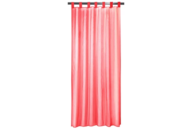 Transparentný elegantný červený záves s lesklým efektom, ktorý dodá interiéru štýl a vkus.