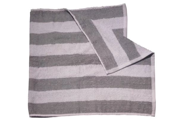 Osuška do kúpeľne s rozmerom 70×140 cm s elegantným vzorom šedých prúžkov.