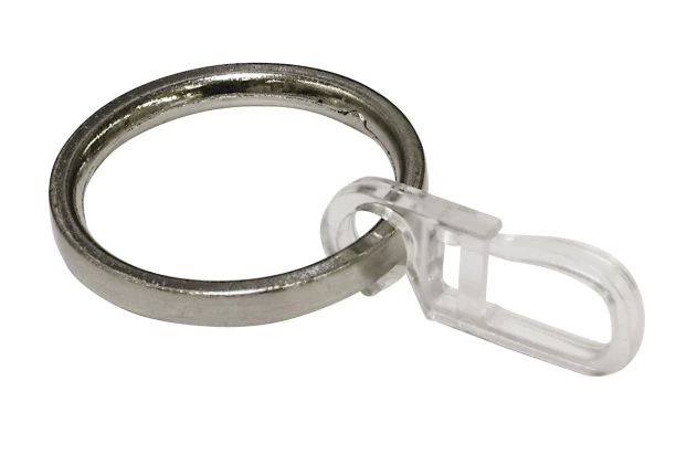 Sada (6 ks) kovových krúžkov s háčikmi na garnižu s vnútorným priemerom 28 mm.