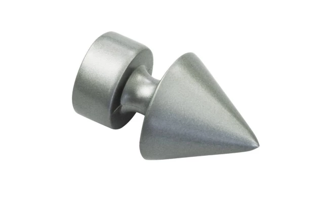 Matná kovová koncovka na garnižu v tvare kužeľa s priemerom 1,9 cm.