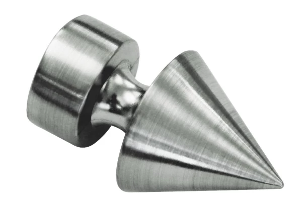Lesklá kovová koncovka na garnižu v tvare kužeľa s priemerom 1,9 cm.