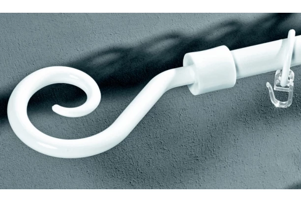 Garniža v bielom prevedení s nastaviteľnou dĺžkou 130–240 cm a elegantnou zaoblenou koncovkou.