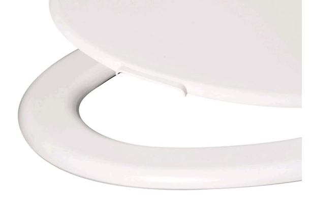Jednoduchá WC doska na toaletu je vyrobená z bieleho plastu a univerzálne sa hodí takmer na každú záchodovú misu.