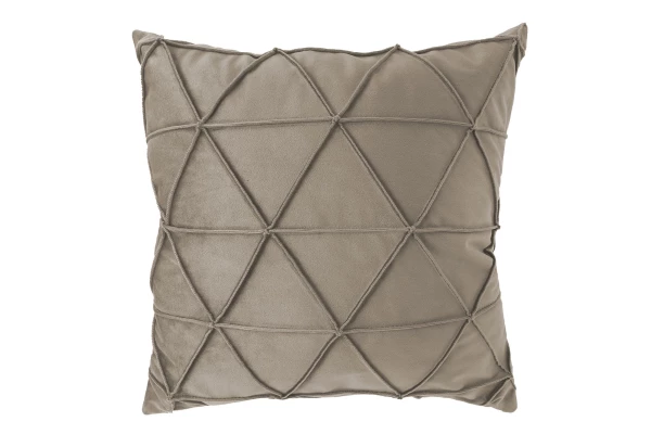 Elegantný dekoračný vankúš vo farbe kamenná taupe s rozmermi 45×45 cm dodá vášmu interiéru moderný a štýlový vzhľad. Je ideálnym doplnkom pre váš gauč, kreslo alebo posteľ a ľahko oživí každý priestor. Prednú stranu zdobí geometrický vzor tvorený pravidelnými trojuholníkmi, ktorý je vytvorený vystúpeným prešívaním. Tento plastický efekt dodáva vankúšu na originalite a vytvára zaujímavú textúru, ktorá pritiahne pozornosť.
