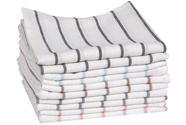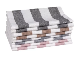 Sada obsahuje 8 kusov kuchynských bavlnených utierok so svetlo šedými prúžkami. Praktické v každej kuchyni, nevyhnutné na utieranie riadu.