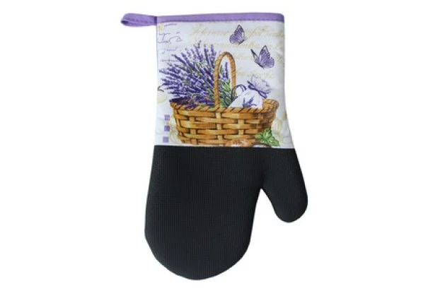 Kuchynská rukavica (chňapka) s motívom levandule Vás vďaka neoprénu ochráni pred teplom až do 250 °C. Rukavica má praktické pútko.