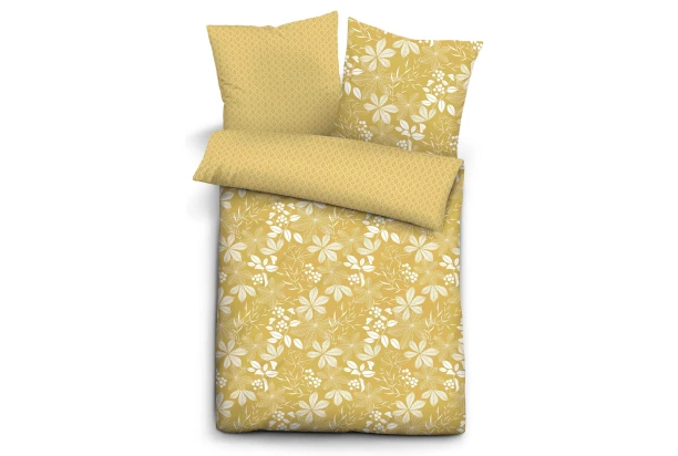 Moderné obojstranné posteľné obliečky z príjemného bavlneného linonu v žltej farbe zaujme atraktívnym rastlinným vzorom na prednej strane alebo malým jednoduchým vzorom kosoštvorcov na zadnej strane. Obliečky sú na dotyk hladké a jemné.