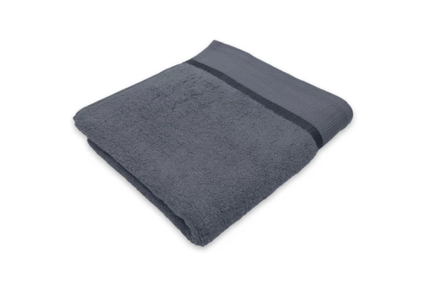 Bavlnený uterák pre hostí v tmavo šedej farbe presvedčí svojou mäkkosťou a savosťou. Uterák s klasickým ozdobným lemom má rozmer 30×50 cm a hodí sa do každej kúpeľne.