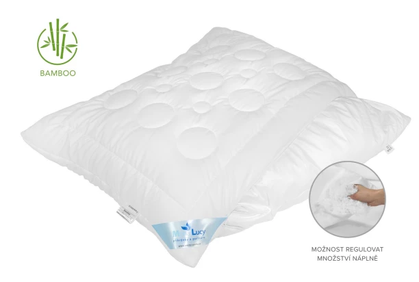 Vankúš s prešívaným poťahom sa vyznačuje komfortom jemnej zmesovej tkaniny s podielom bambusových vlákien a polyesterových mikrovlákien. Mimoriadne vlastnosti bambusových vlákien sa prejavujú v stálych antibakteriálnych účinkoch a vysokou savosťou. Vankúš je alergicky neutrálny, vďaka regulácii množstva náplne zaisťuje optimálnu oporu hlavy. Rozmer 70×90 cm.