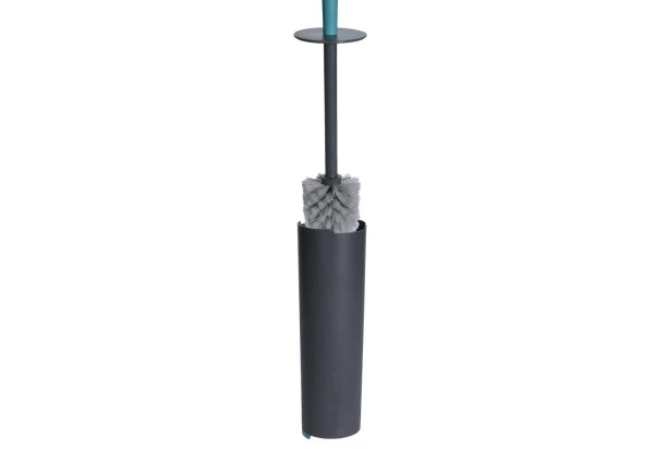 Praktická WC kefa s tyrkysovou rukoväťou je dodávaná so stabilným stojanom v šedej farbe. Nevyhnutný doplnok pre čistú domácnosť.
