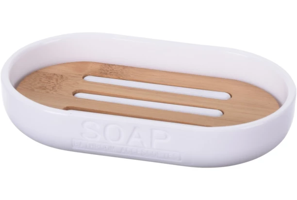 Jednoduchá, ale napriek tomu štýlová kúpeľňová miska na mydlo v bielom prevedení s bambusovou drevenou vložkou skvelo zapadne do modernej aj klasickej kúpeľne.